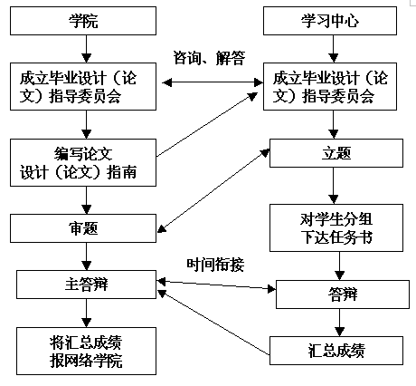 3、 毕业答辩阶段。毕业答辩时,各校外学习中心成立答辩小组。相关学院必须派1名指导委员会的教师作为主答辩,主答辩教师将成绩带回网络学院。答辩必须于2004年5月20日前完成。具体答辩时间由各学习中心与相关学院衔接。