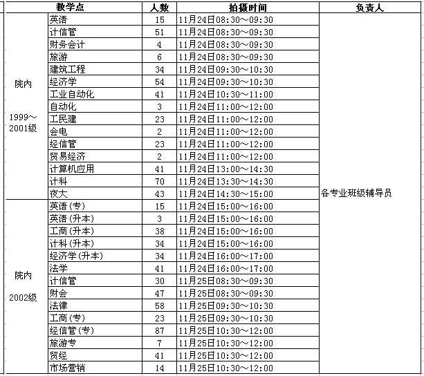 七、各教学点(含校外学习中心)负责人要提前与拍摄地点负责人和拍摄工作人员联系,在安排的时间内组织学生按时到场拍摄,并维持好现场秩序。