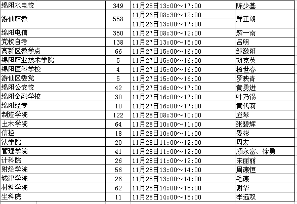 2004届毕业生图像采集进度表(绵阳地区)