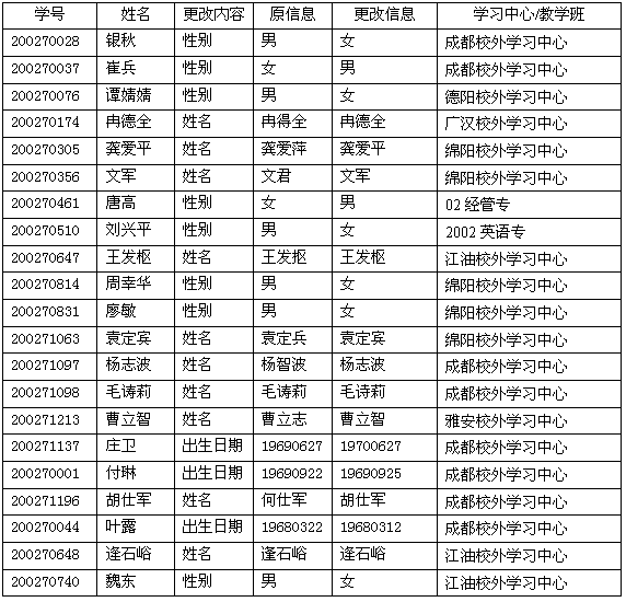 网络教育学院关于2004届毕业生更正基本信息的紧急通知
