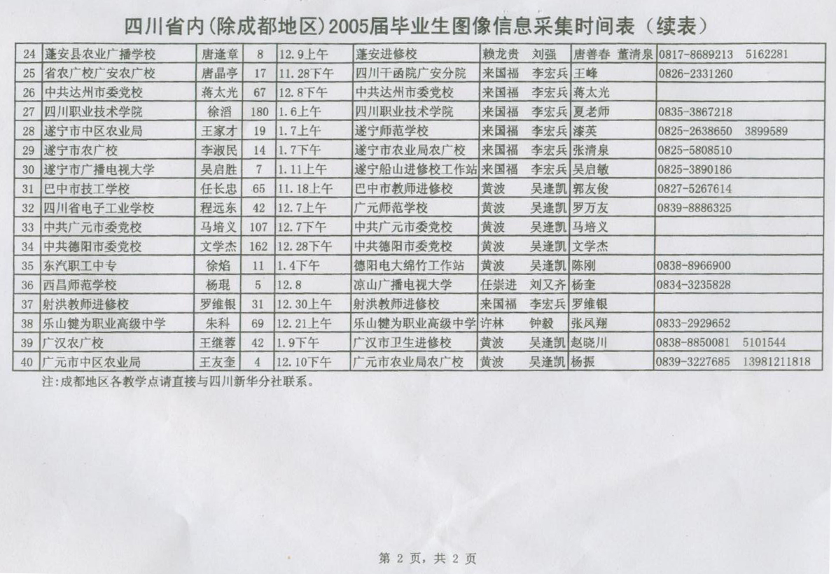 根据新华社四川分社、四川省教育厅的统一部署,我校2005届毕业生、2006届春季毕业生图像信息采集工作现已全面展开。现将图像采集时间安排以及具体要求通知如下: