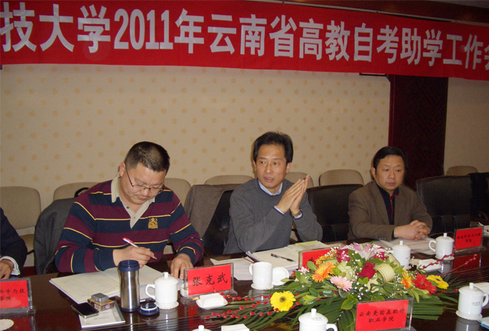 成人教育学院和网络教育学院张克武书记通报了我校作为云南省高等教育自学考试主考学校以来的工作,强调了要进一步加强与云南省招生考试院和云南的各助学中心加强沟通,做好自学考试助学工作,切实提高助学教育教学质量。