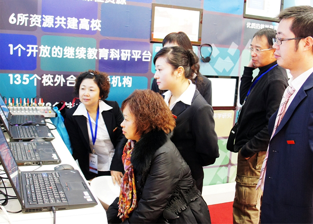 12月23-25日,教育部在北京国家会议中心举办了“2011继续教育数字化学习资源共享与服务成果展览会”,同时举办了继续教育学会2011年学术年会暨高等学校继续教育经验交流会。共有137所高校、培训机构、及软件公司参加。成人网络教育学院院长王营池、副院长朱东鸣、副院长刘玉莲、继续教育培训管理中心主任晏斌、材料学院院长李玉香、环资学院副院长高德政、及成网学院相关人员参加了会议和展览。