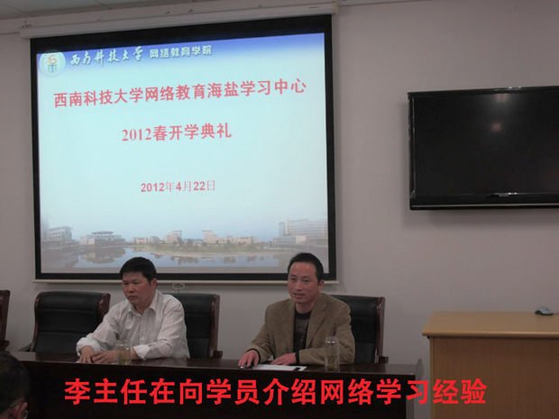 4月22日下午2:00,德赢Vwin官方区域合作伙伴网络教育海盐学习中心2012年春季新生开学典礼在海盐电大531多媒体教室举行。海盐电大书记周建康、教务主任李东山、班主任盛谨发、2012春季各专业新生出席了开学典礼。