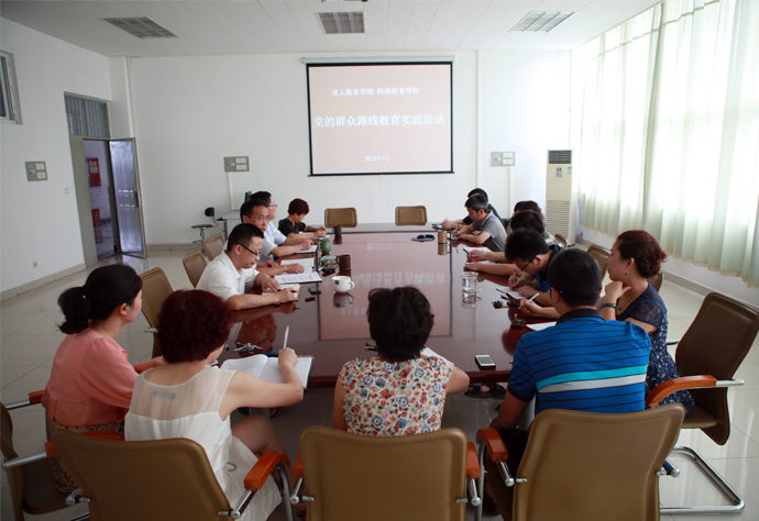 从7月16日,成人、网络教育学院党的群众路线教育实践活动集中教育学习全面开始。当天下午学院科以上党员、干部集中观看、学习了《习近平总书记在党的群众路线教育实践活动工作会议上的重要讲话》,并根据学校的统一部署,为使学院党的群众路线教育实践活动落到实处、见到成效,学院专门就活动各阶段、各环节工作的开展做了详细方案和统一安排。