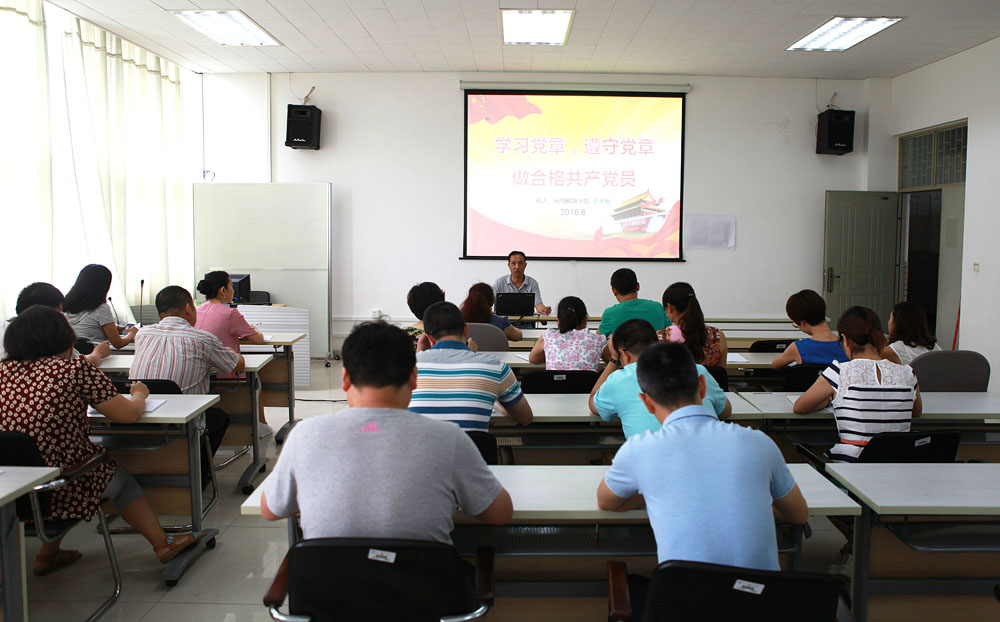 6月20日上午,学院党总支书记王天恒在五楼会议室为学院二级中心组成员及全体党员进行了“学习党章,遵守党章,做合格共产党员”的专题党课辅导。