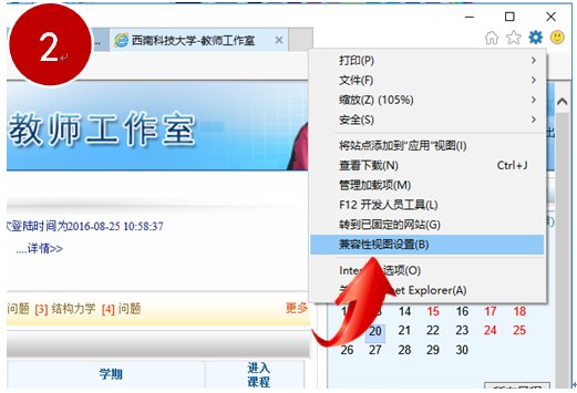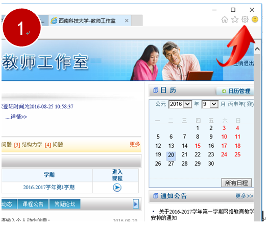 关于高版本浏览器IE10,IE11无法在【教师工作室】中无法输入通知公告等的解决办法—兼容性视图设置。具体步骤如下: