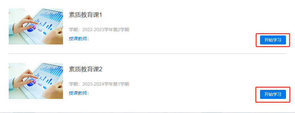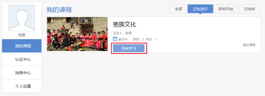 8、点击“我的课程”,进入页面后点击“开始学习”即开始学习该门课程;