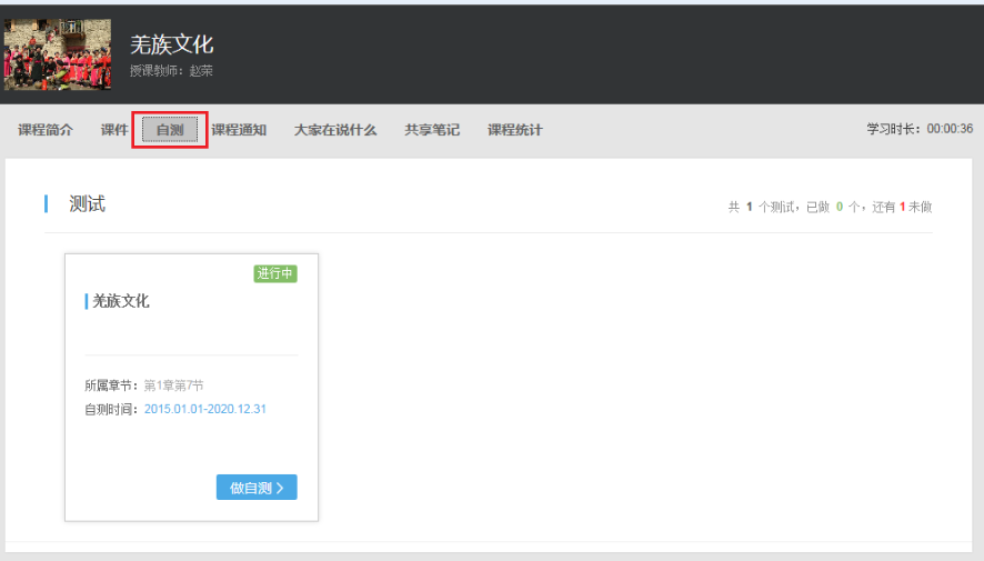 10、点击“自测”按钮查看课程自测习题(在确认成绩合格之前请不要点击查看成绩,否则该课程将无法及格,点击“查看答案”之后该课程自测将无法重复做);