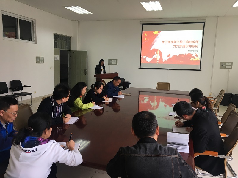 首先,龚春同志带领大家集中学习中共教育部思政司于2017年8月发布的《关于加强新形势下高校教师党支部建设的意见》,这是深入贯彻落实党的十八届六中全会和全国高校思想政治工作会议精神,推进高校教师党支部建设的制度化、规范化、科学化。明确了高校教师党支部在高校党的建设和学校基层治理体系中的职能定位,指出高校教师党支部是教育、管理、监督和服务教师党员的基本单位,是把党的路线方针政策落实到高校基层的战斗堡垒,是党团结和联系广大教师的桥梁纽带,是办好中国特色社会主义大学的重要支撑。