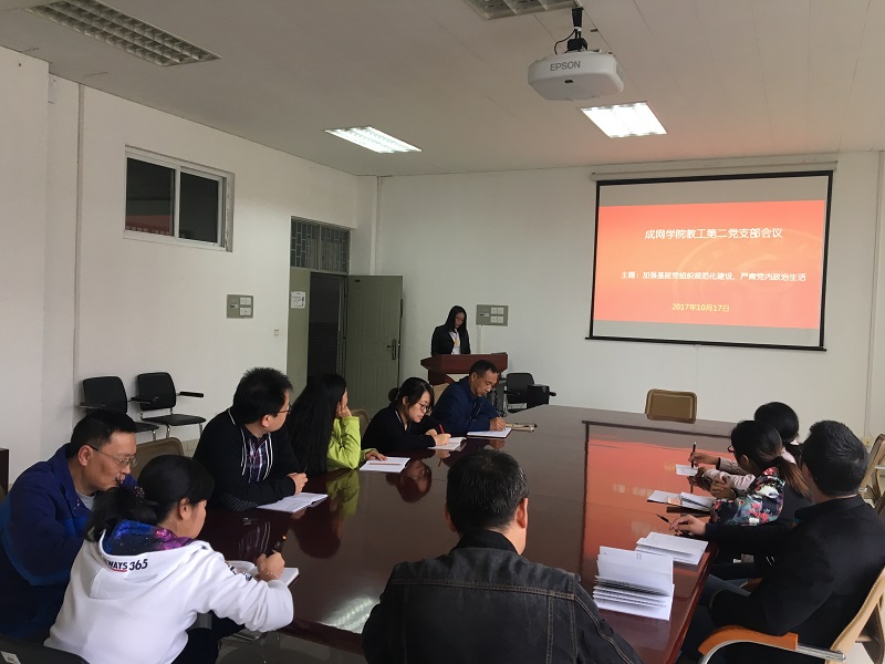10月17日下午,成网学院教工第二党支部在学院四楼会议室召开了 “不忘初心,学习榜样”为主题的支部学习活动,会议由党支部书记龚春同志主持。