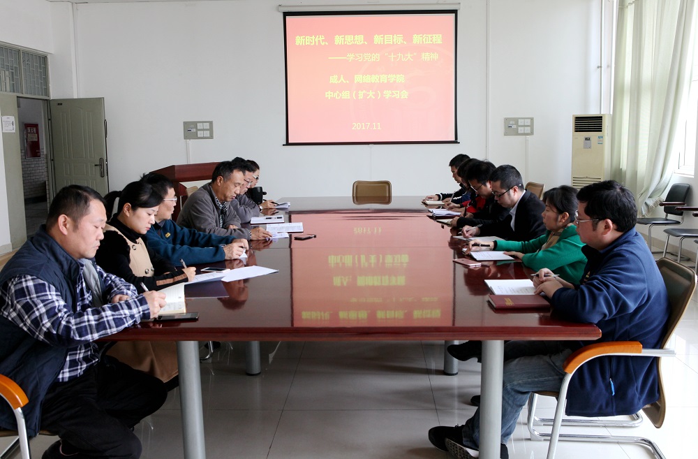 11月9日,成网学院在4楼会议室召开了“学习贯彻党的十九大精神”学习会。学院中心组(扩大)成员参加了学习。