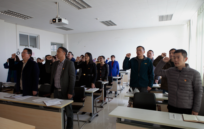 会前,全体党员在学院党总支书记王天恒同志的带领下,全体党员起立,举起右手,重温了入党誓词。