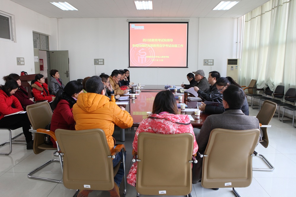 12月20日,四川省教育考试院党委委员、省教育考试命题中心主任何星原一行四人,来我校检查指导高等教育自学考试命题工作,开展命题工作调研。调研座谈会在成网学院四楼会议室召开,校保密办、助学学院、自考办、命题教师和审题教师代表等相关人员参加了调研座谈。