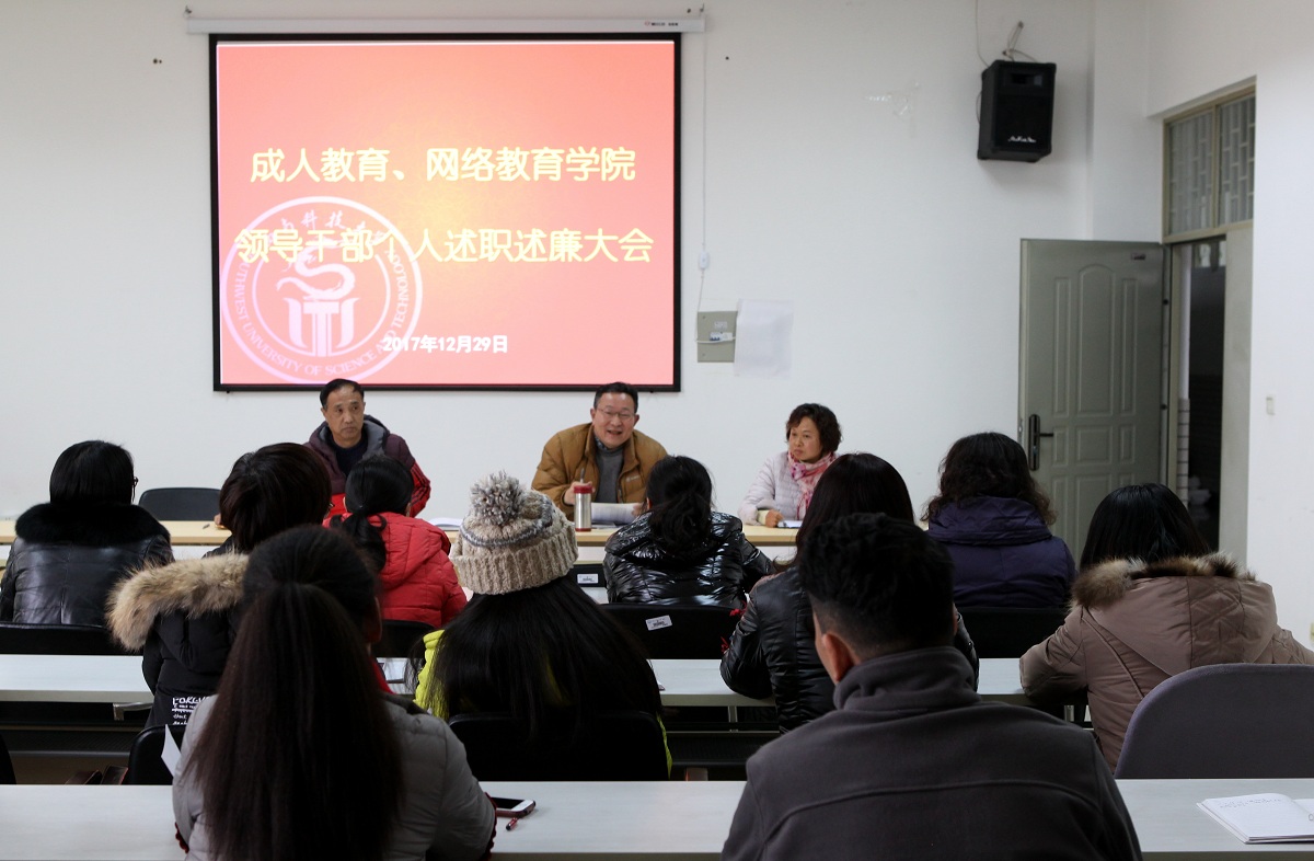 2017年12月29日下午,成网学院召开了2017年度述职述廉和民主测评会。会议由学院党总支书记王天恒主持,学院全体职工参加了会议。