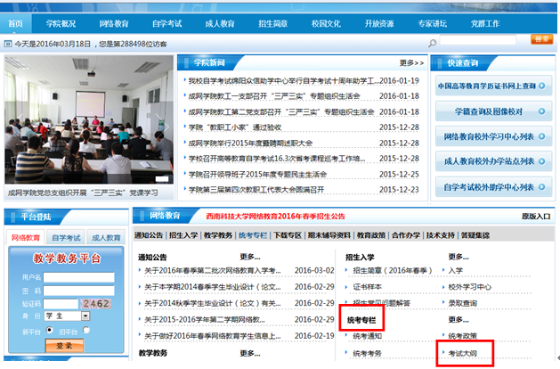 3、学生可登陆网络教育统考练习系统(该系统的操作、模拟考试的过程和界面与统考的系统一致,但系统内模拟题仍为2010年考试大纲版练习题),了解统考系统的界面和考试过程;系统登陆方法见我院网站“统考专栏”的有关通知。