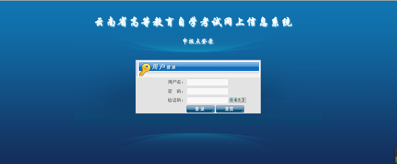 云南省高等教育自学考试网上信息系统申报确认点登录地址:使用IE,兼容模式下登录网址:http://222.221.6.160:9909/sh.html