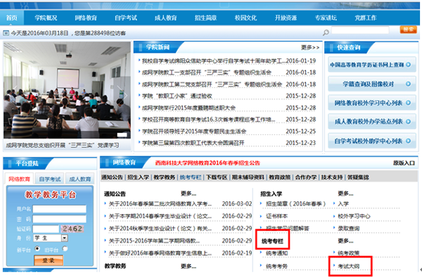 1、 请学生登陆“西科在线”()→网络教育板块中的“统考专栏”→“考试大纲”下载《计算机应用基础》考试大纲(2013年修订版)和《大学英语》(A、B、C)考试大纲(2013年修订版);