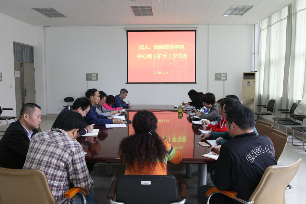 2018年10月11日下午,成网学院在东八C座四楼会议室召开二级中心组(扩大)学习会,专题学习全国教育大会、全国宣传思想工作会议精神及新修订的《中国共产党纪律处分条例》,学院领导、科室负责人及支部书记参加此次会议,会议由党总支书记王天恒主持。
