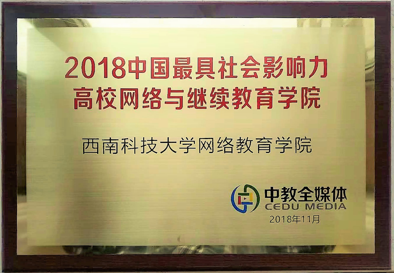 大会评选出2018中国最具社会影响力院校,并举行了隆重的颁奖仪式,我校网络教育学院获评“2018中国最具社会影响力高校网络与德赢Vwin官方区域合作伙伴”称号。自2015年以来,我校网络教育学院连续四年获此殊荣。