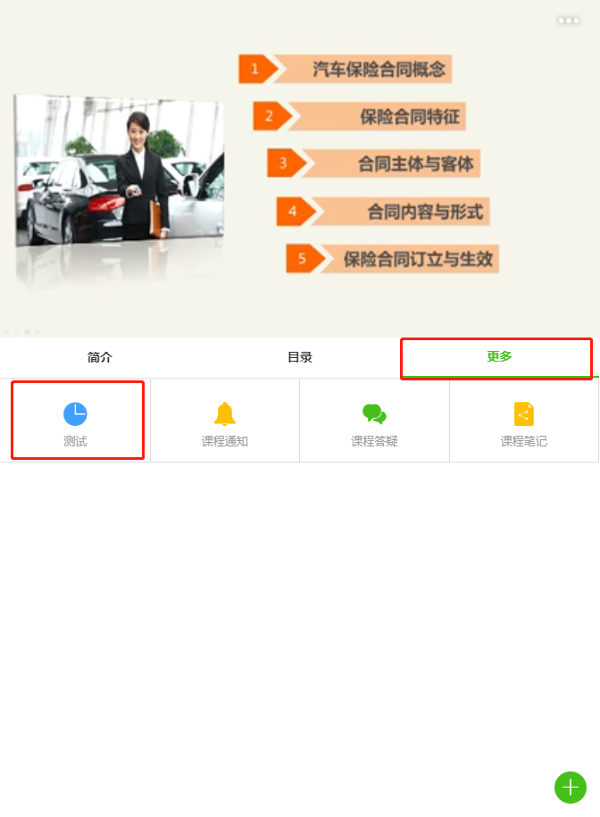 点击“更多”菜单即可查看课程通知,参与主题讨论、课程答疑,完成在线作业和测试。