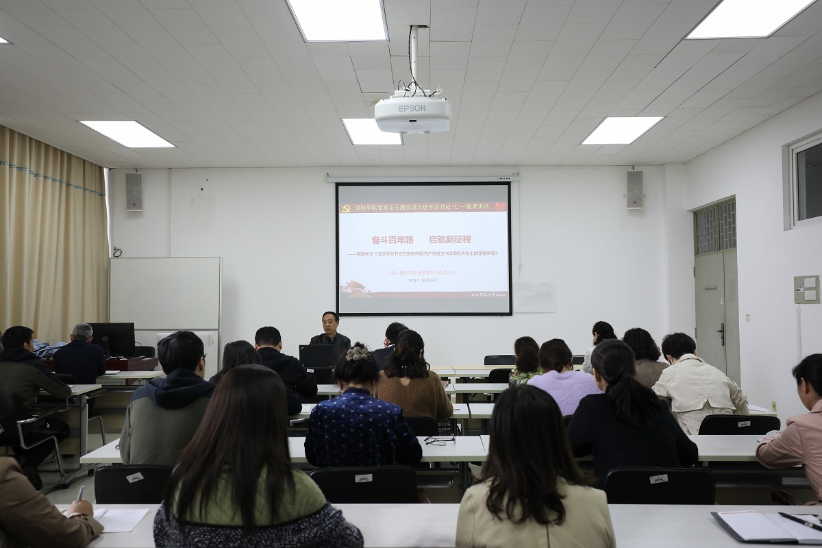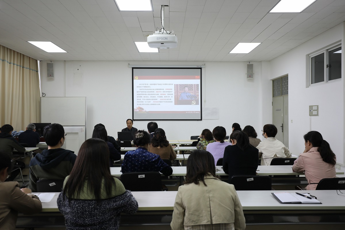 王天恒同志以《奋斗百年路 启航新征程—学习习近平总书记在庆祝中国共产党成立100周年大会上的重要讲话》为主题,围绕习近平总书记“七一”重要讲话内容和精神,结合视频学习材料,回顾了党的百年奋斗历程,向全院教职工宣讲了“坚持真理、坚守理想、践行初心、担当使命、不怕牺牲、英勇斗争、对党忠诚、不负人民”的伟大建党精神。这是一次党史教育的深刻党课。
