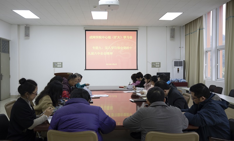 12月6日,学院召开中心组(扩大)学习会议,深入学习领会党的十九届六中全会精神。