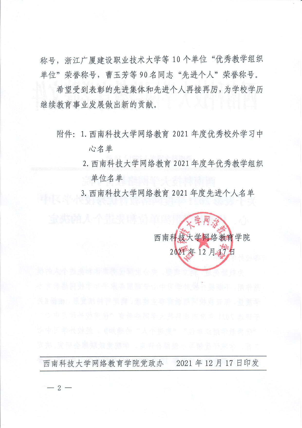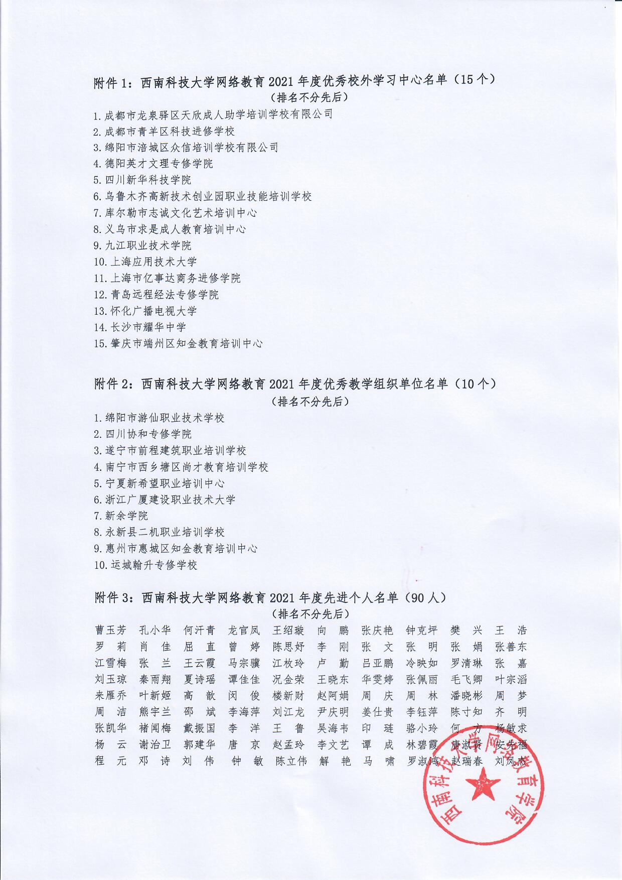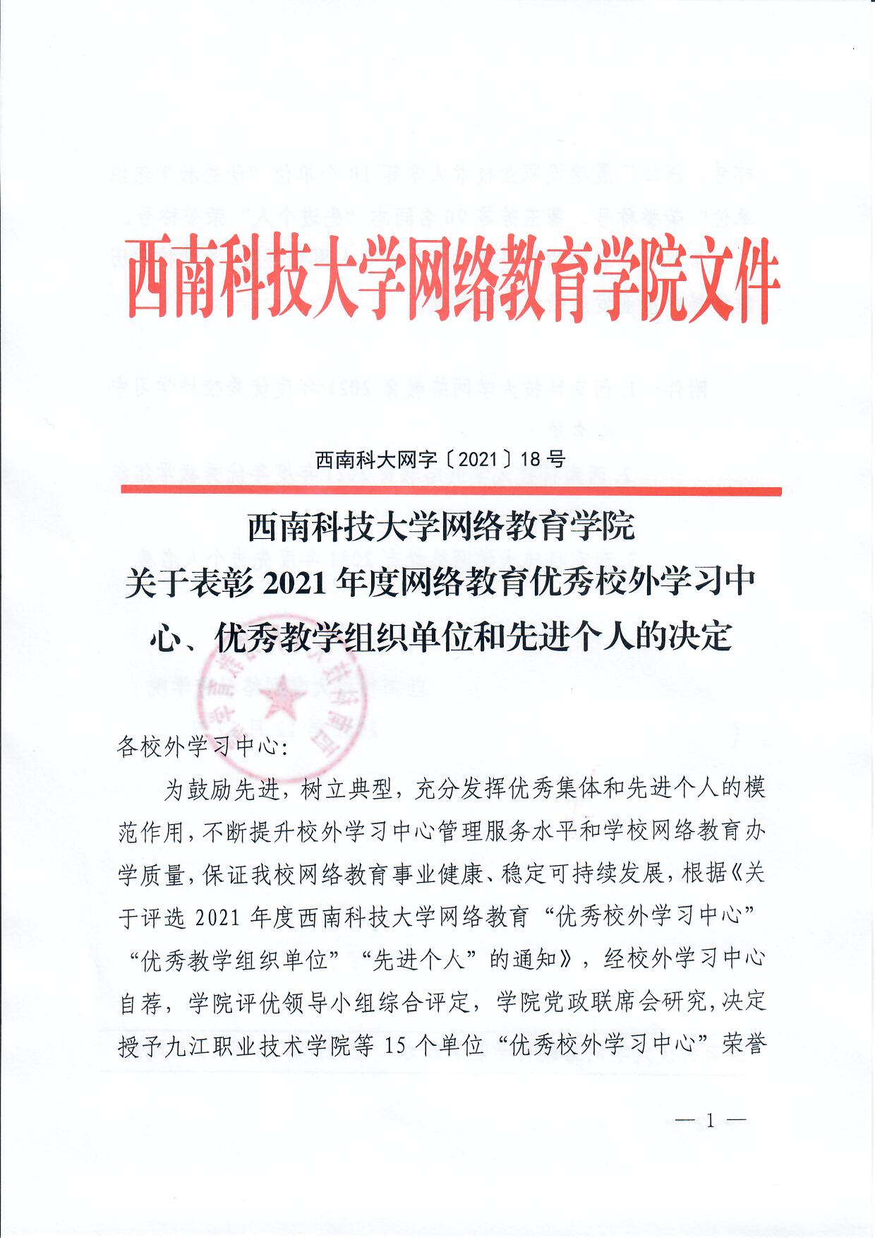 德赢Vwin官方区域合作伙伴网络教育学院关于表彰2021年度网络教育优秀校外学习中心、优秀教学组织单位、先进个人的决定