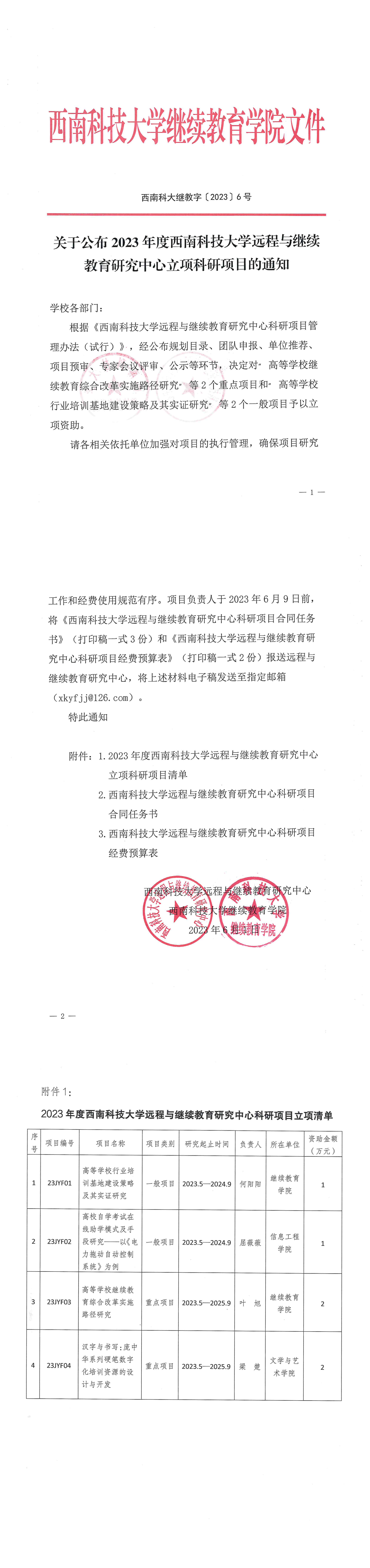 关于公布2023年度德赢Vwin官方区域合作伙伴远程与继续教育研究中心立项科研项目的通知