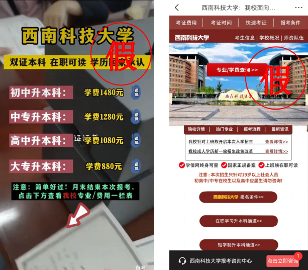 严正警告使用抖音、今日头条、网站等一切形式进行虚假宣传的发布者和媒体尽快删除虚假招生宣传信息。我们将通过法律手段维护学校声誉、追究违法者的法律责任。如涉事者为我校授权的校外教学点(助学中心),一经查实将从严从重处理。