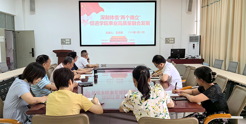 会上,学院正处级组织员王天恒同志围绕“深刻领悟‘两个确立’的决定性意义,全面加强党的领导,促进党建与学院事业发展深度融合”为主题进行领学。他讲到,通过系统深入学习,不断提高党员干部的政治判断力、政治领悟力、政治执行力,更加自觉地在思想上政治上行动上同以习近平同志为核心的党中央保持高度一致。他讲到,全体党员干部要坚持学校党委和行政的正确领导,充分发挥学院党总支政治核心作用,以政治建设为统领,牢牢把握意识形态工作领导权。学院党支部要以组织力提升为重点,创新党支部建设,发挥好党支部战斗堡垒作用和党员先锋模范作用;继续推进全面从严治党,完善落实党建制度,构建党建重点任务工作机制,提升党建工作科学化水平,为学院的快速发展提供思想、政治和组织保障。龚春及王红妮同志就学习“深刻领悟‘两个确立’的决定性意义,全面加强党的领导,促进党建与学院事业发展深度融合”体会,并结合工作进行了交流发言。