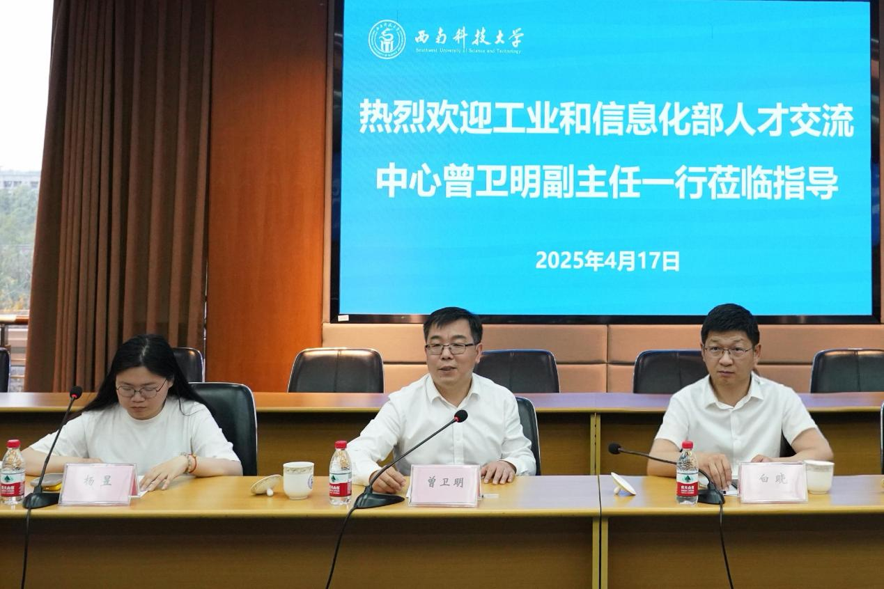 4月17日,工业和信息化部人才交流中心副主任曾卫明一行来校就企业经营管理“头雁人才”培养计划绿色建材产业及应用研修班相关事宜开展专题调研交流。学校副校长尚丽平热情接待曾卫明一行,并举行座谈会。
